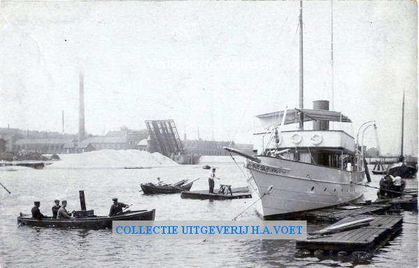 | Omschrijving | plezierjacht op achtergrond Wilton Feijenoord | |