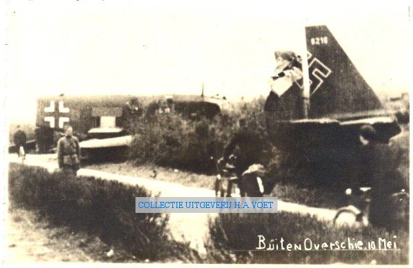 | Omschrijving | oorlog 1940 op 10 mei neergestort Duits vliegtuig op de weg Rotterdam-Den haag | |