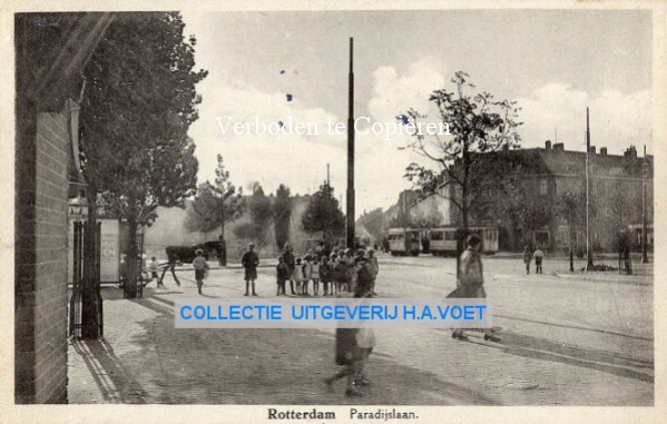 1930 jeugd op straat tram