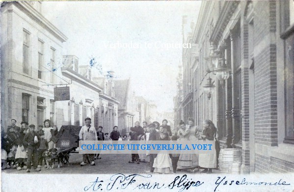 | Omschrijving | 1910 kruidenierswinkel café-jeugd op straat | |
