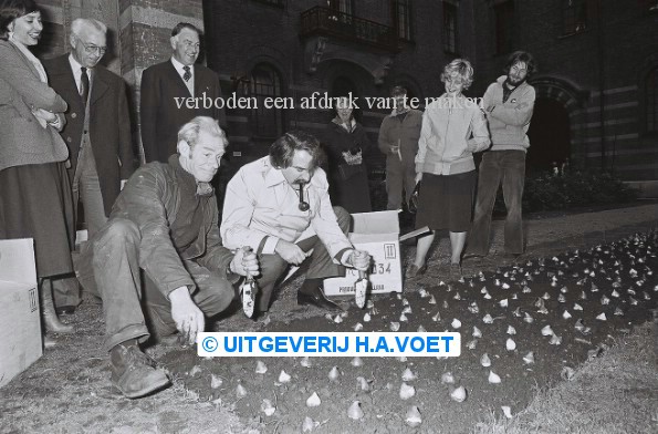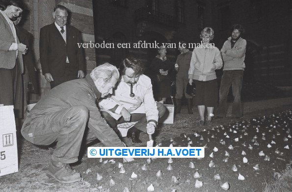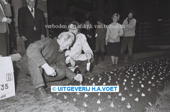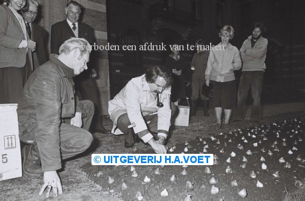 | Omschrijving | 21 november 1980 Burg. v.d. Louw plant bloembollen in Stadhuistuin | |