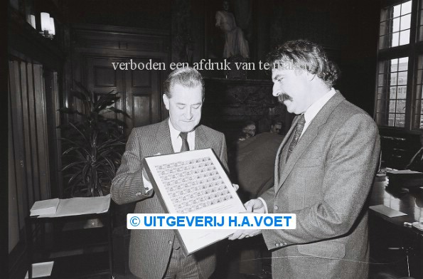 | Omschrijving | 19 december 1980 uitreiking Europa-postzegels door drs. A.v.Ommeren Burg. A.v.d.Louw Stadhuis Rotterdam | |