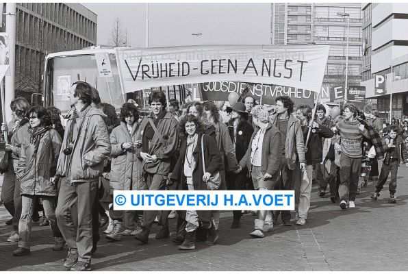 | Omschrijving | 8 maart 1983 optocht volgelingen Bhagwan | |