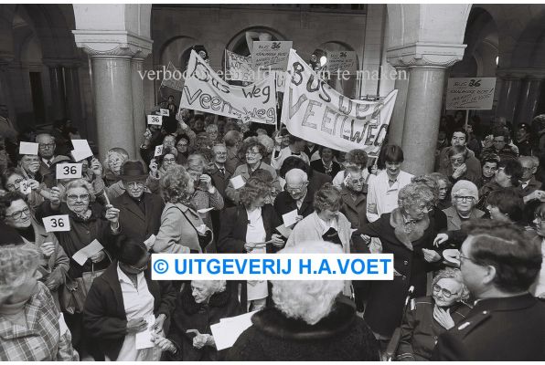 | Omschrijving | 9 maart 1983 aanbieden handtekeningen Burgm.Peper protest kliniek Veenweg en tegen opheffen bus 36 Stadhuis Rotterdam | |