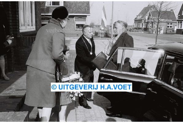 | Omschrijving | april 1968 Mr.klaasesz bezoekt Nieuwerkerk,raadhuis met burgm.Vogelaar | |
