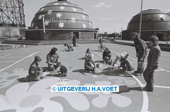 | Omschrijving | juni 1976 jeugd beschildert trottoir bij koepel restant gashouder | |