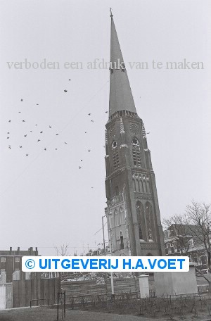 | Omschrijving | 19 maart 1976 opblazen torenspits Rozenkranskerk Kerken | |